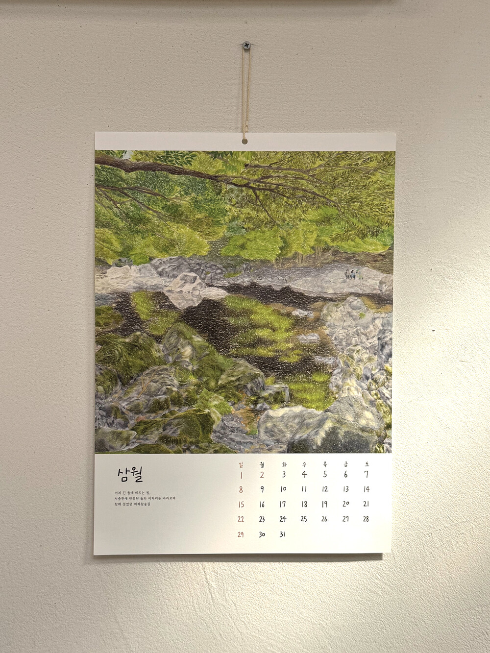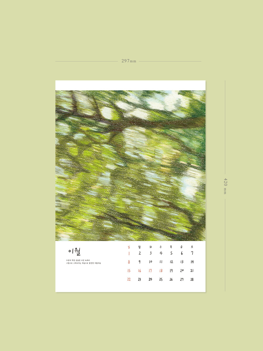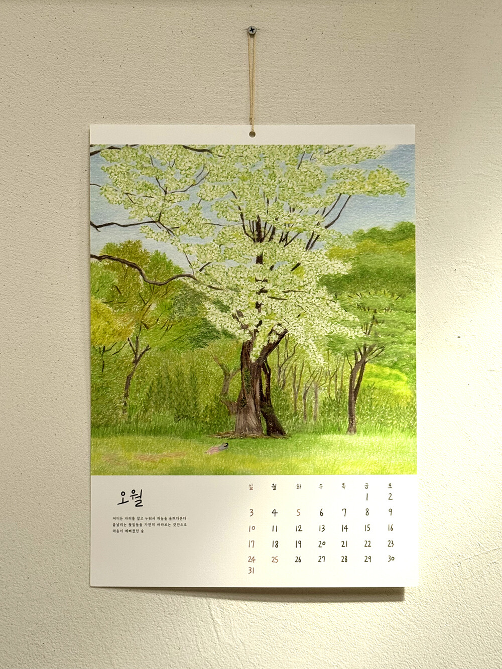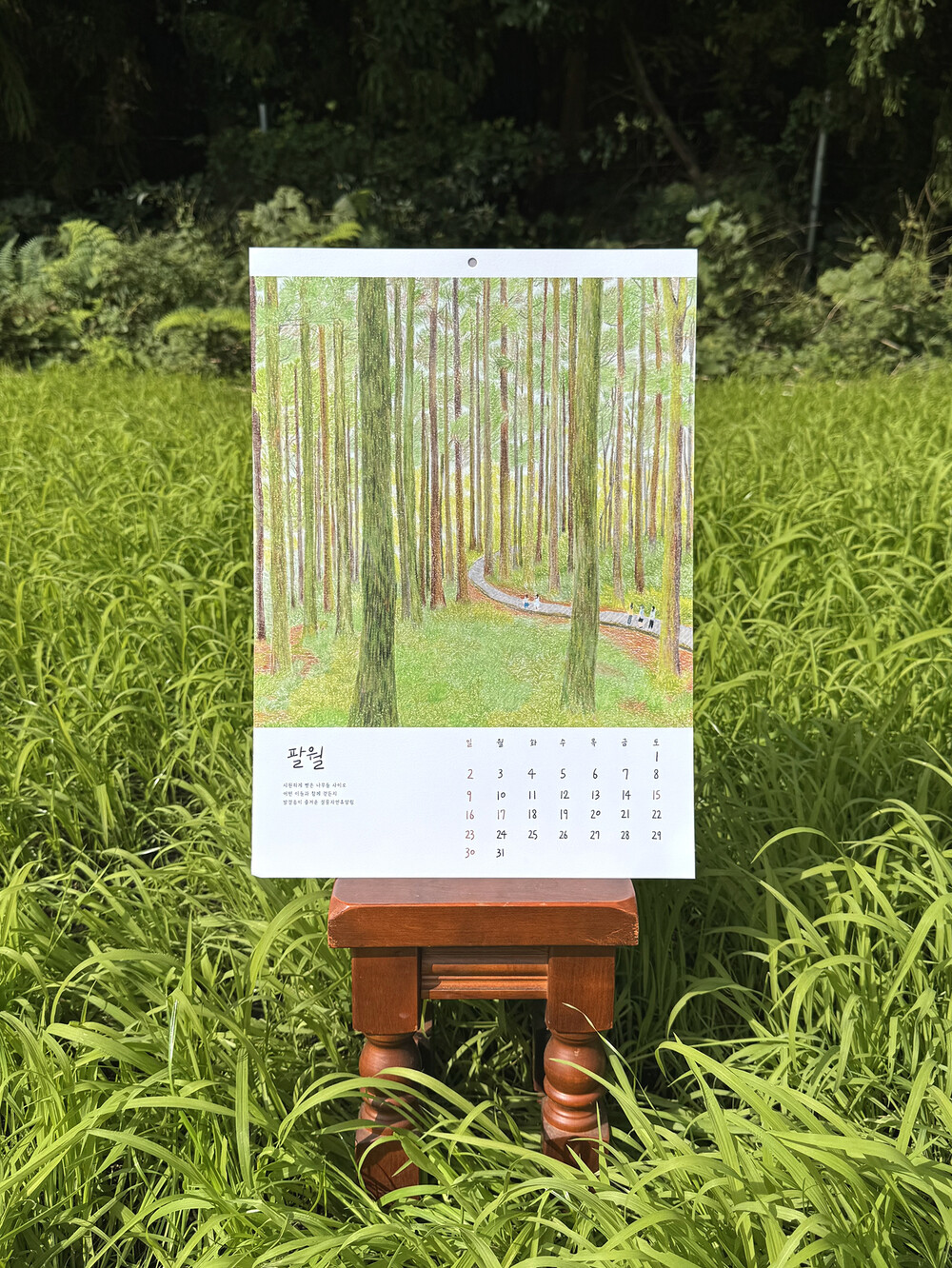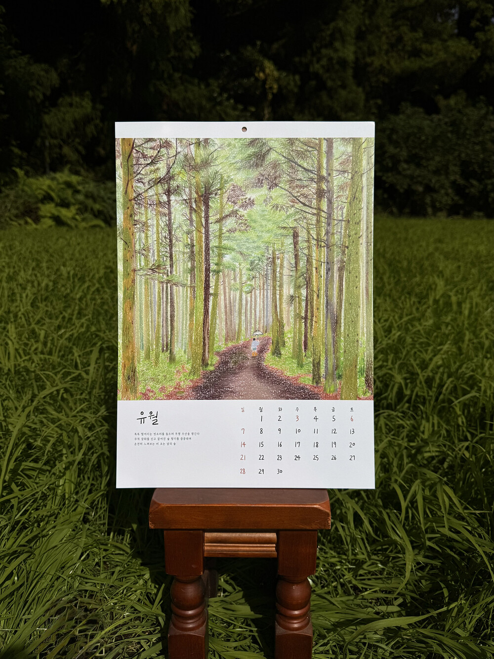 달력은 벽걸이형 포스터와 탁상형 삼각받침대 두 종류입니다.