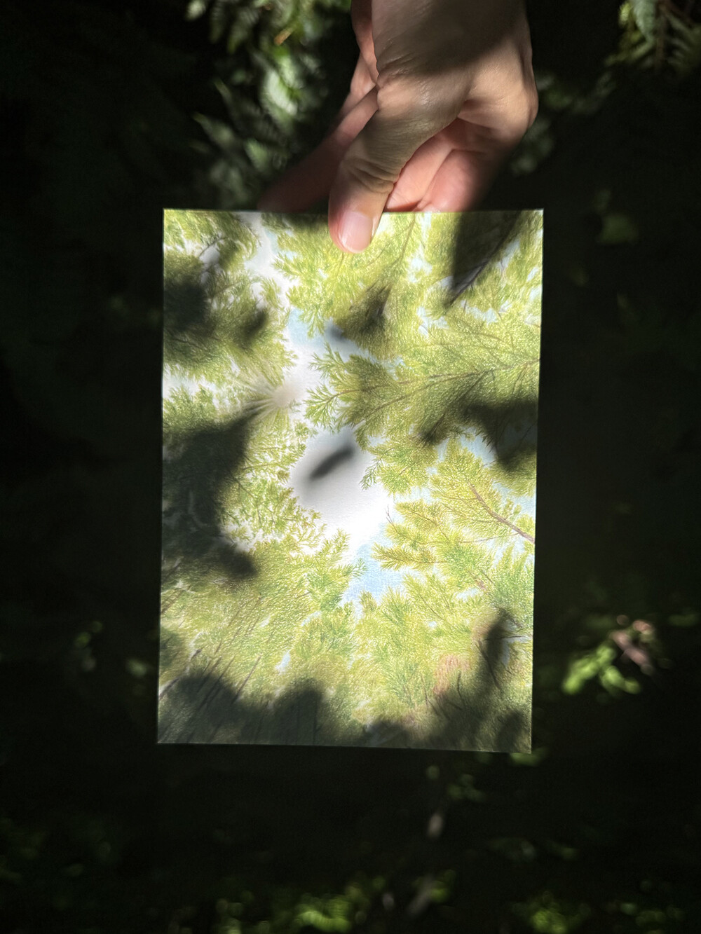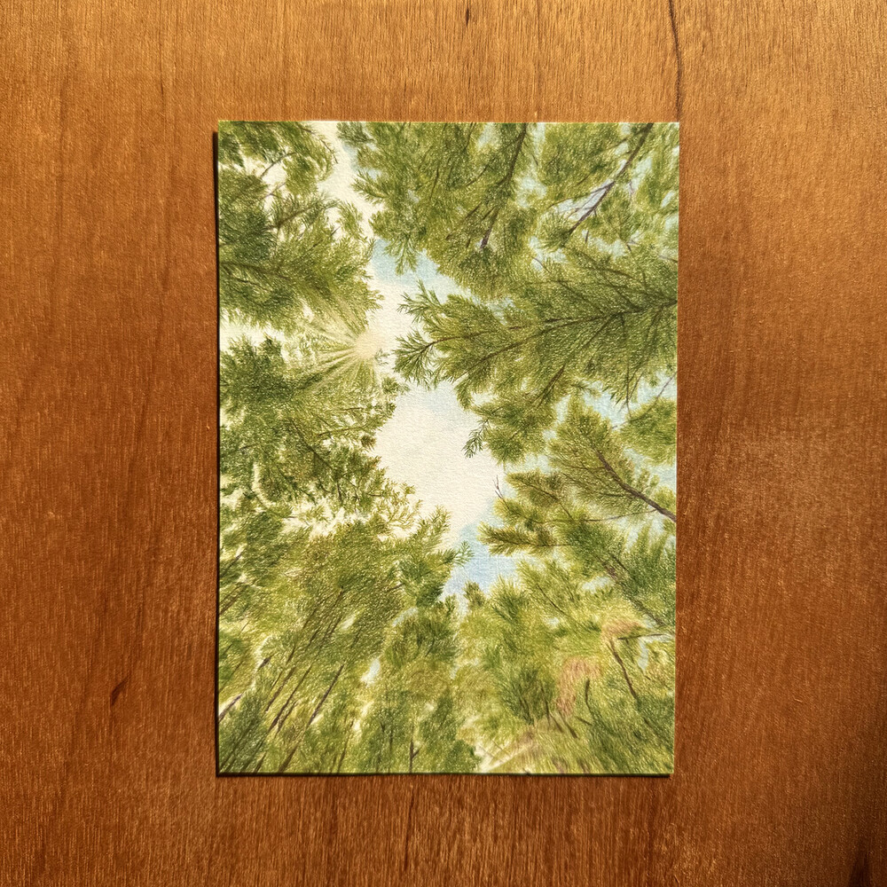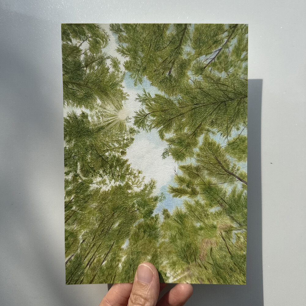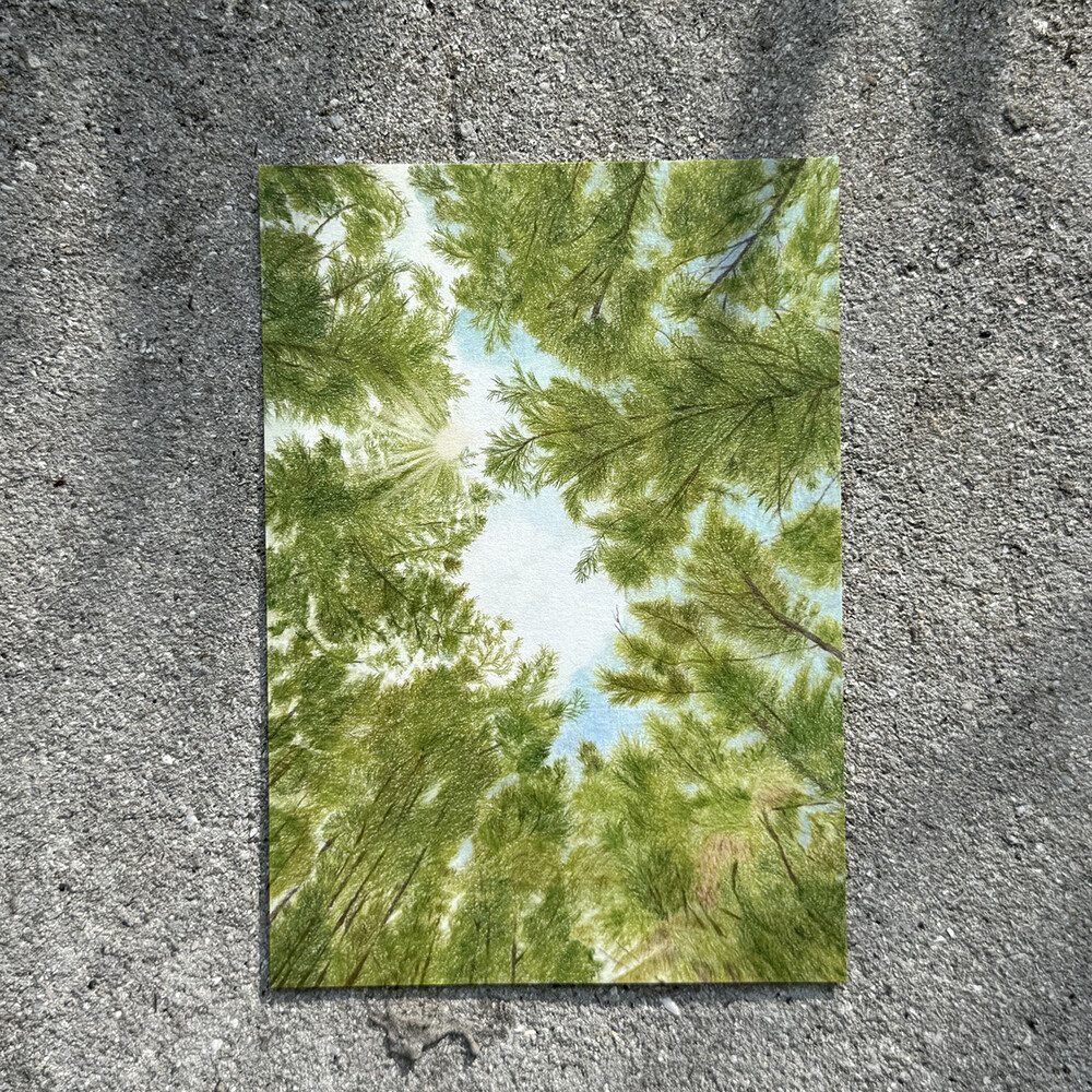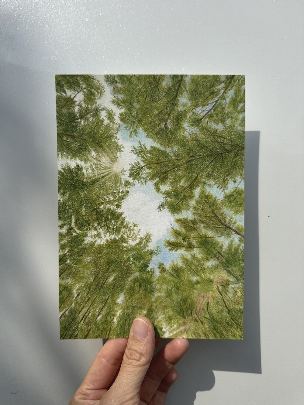 숲 속에서 나무 사이로 올려다 보이는 하늘을 담았습니다. 🌿