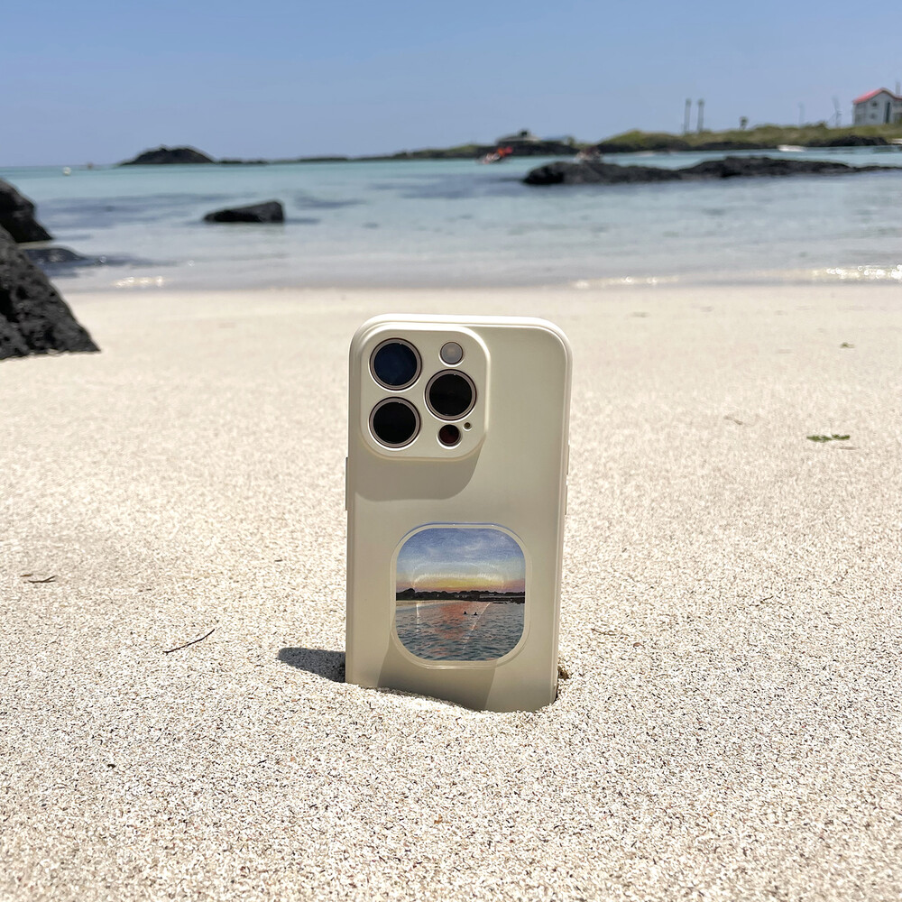 붉게 물드는 여름 바다의 물결과 하늘이 담긴