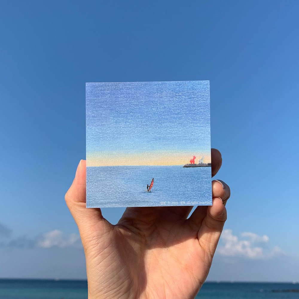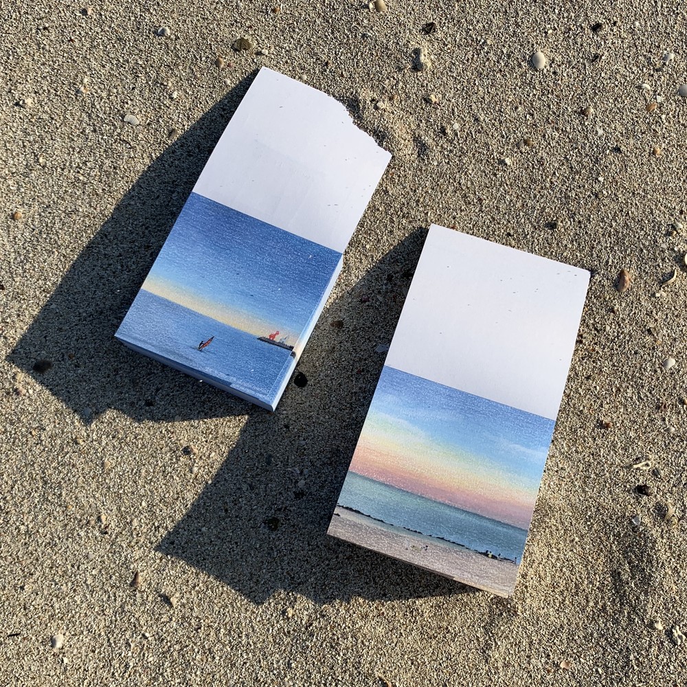 여름날 소랏빛 하늘과 바다를 담은 메모지입니다.