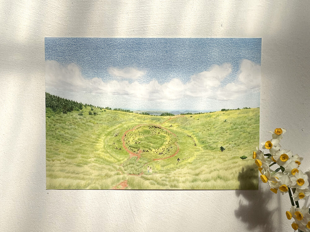 색연필 904번의 하늘색과 몽실몽실한 구름과 어디를 둘러봐도 청량하게 보였던 금오름