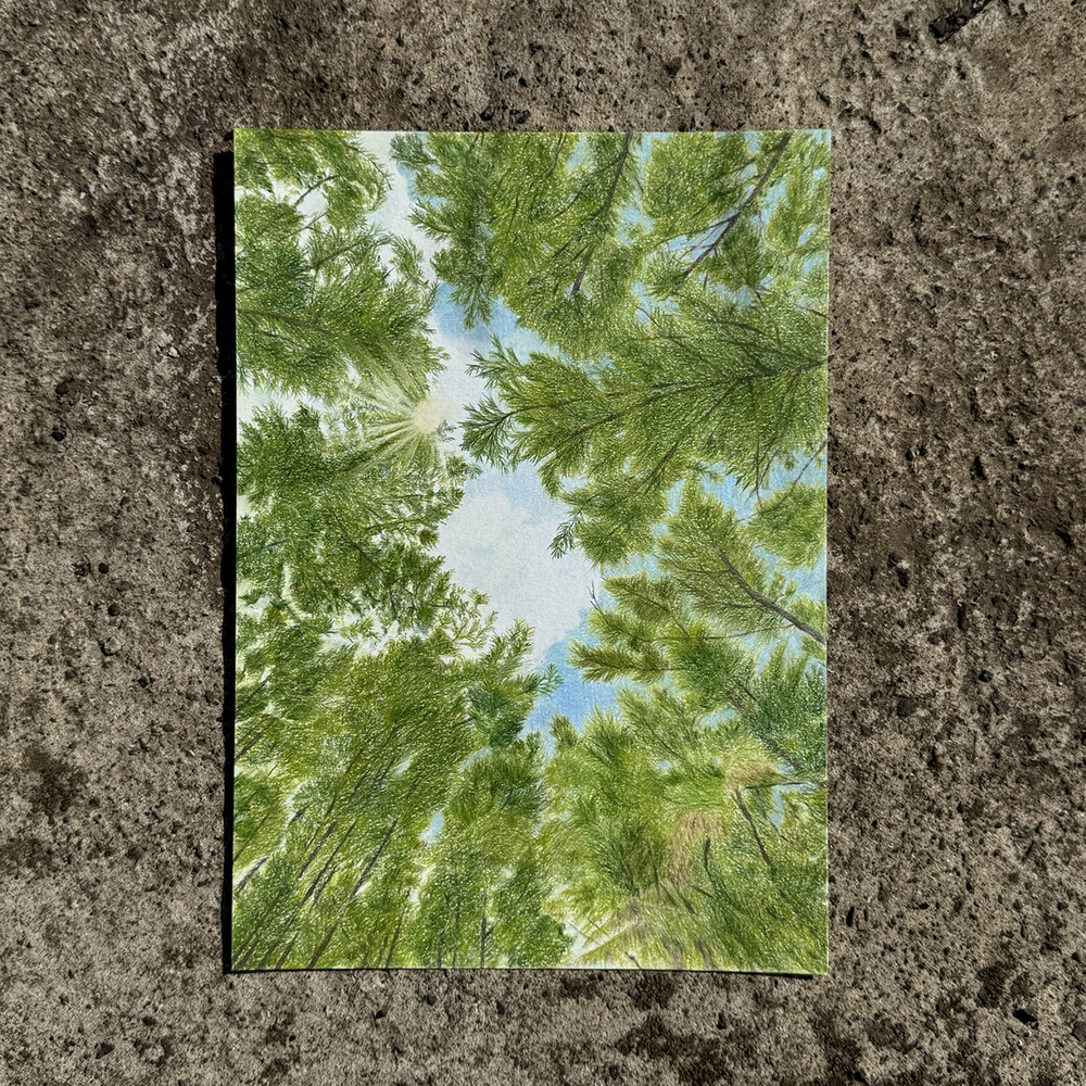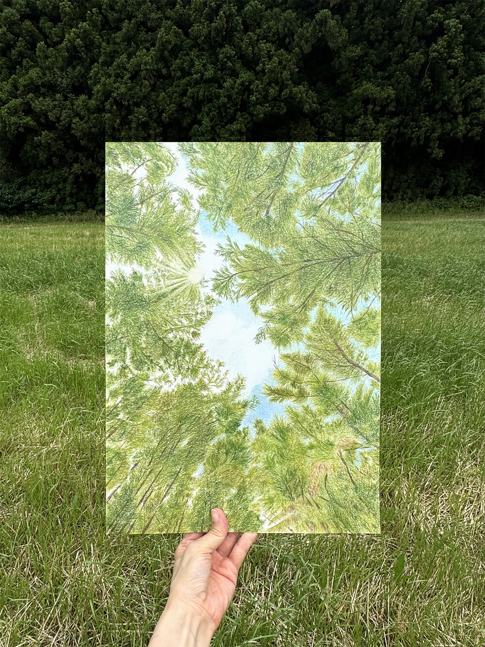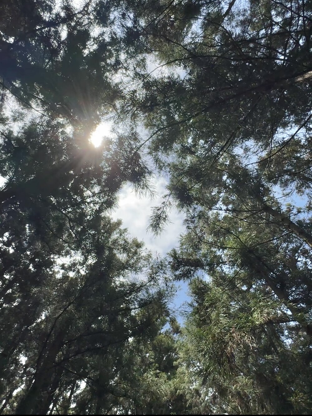 숲 속에서 나무 사이로 올려다 보이는 하늘을 담았습니다. 🌿