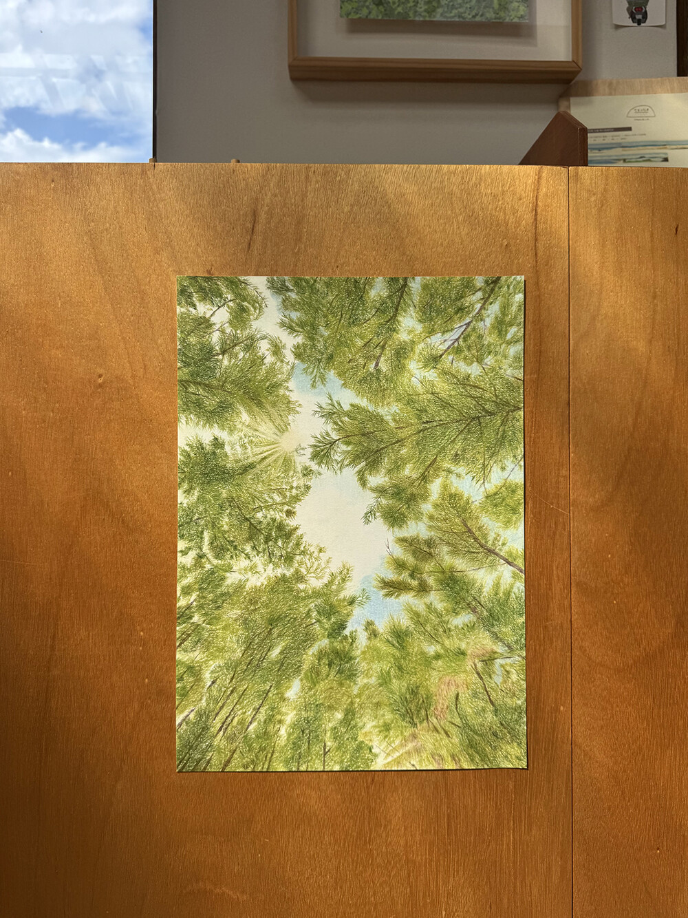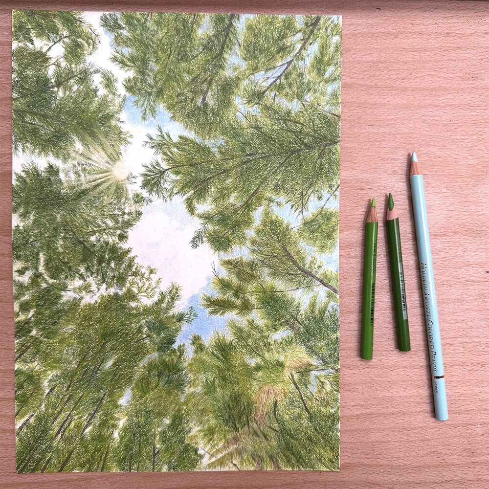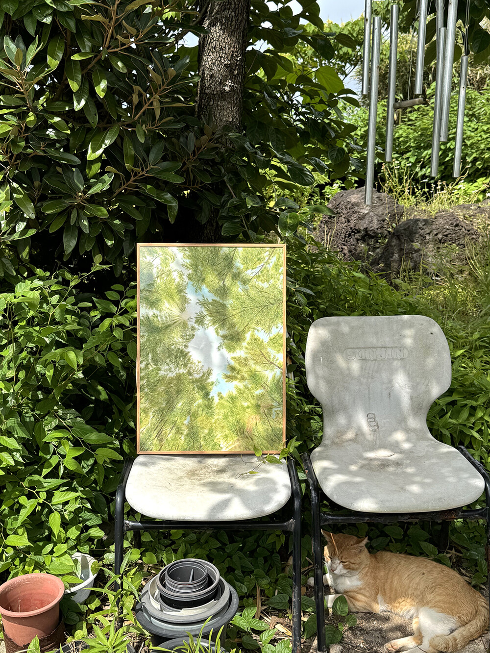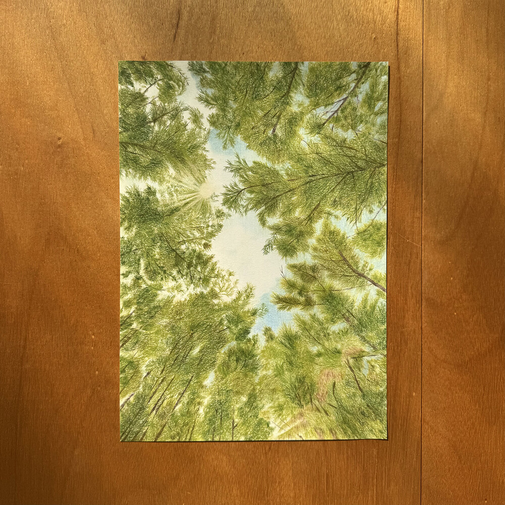 숲 속에서 나무 사이로 올려다 보이는 하늘을 담았습니다. 🌿