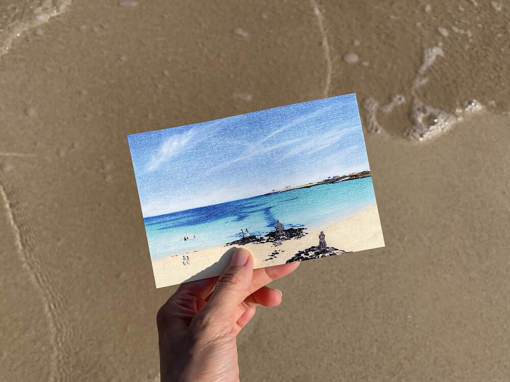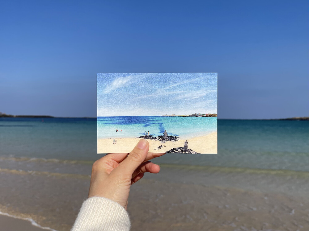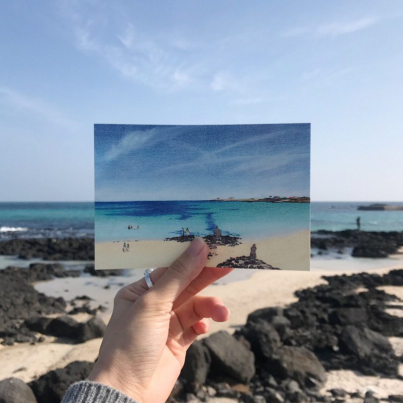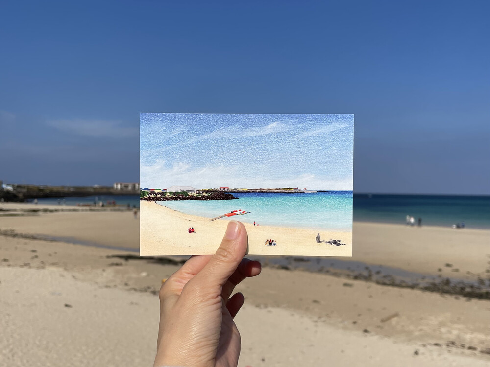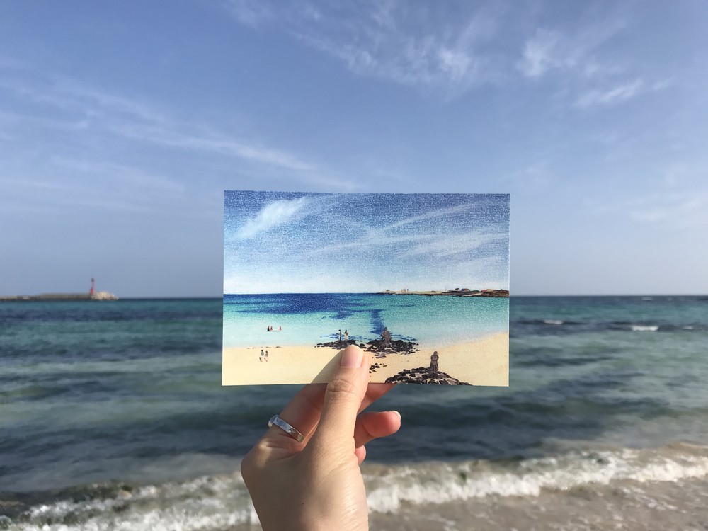 물끄러미 한참을 바라보았던 제주 바다를 담은 그림,