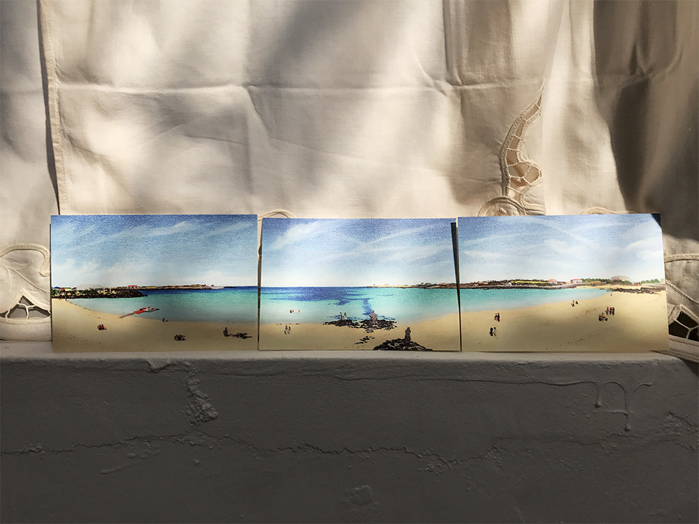세 장이 하나로 이어지는 엽서 세트입니다.
