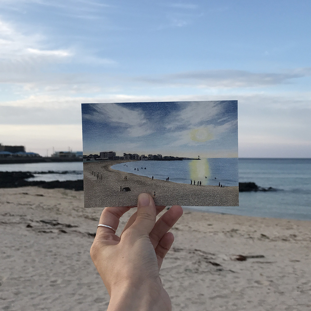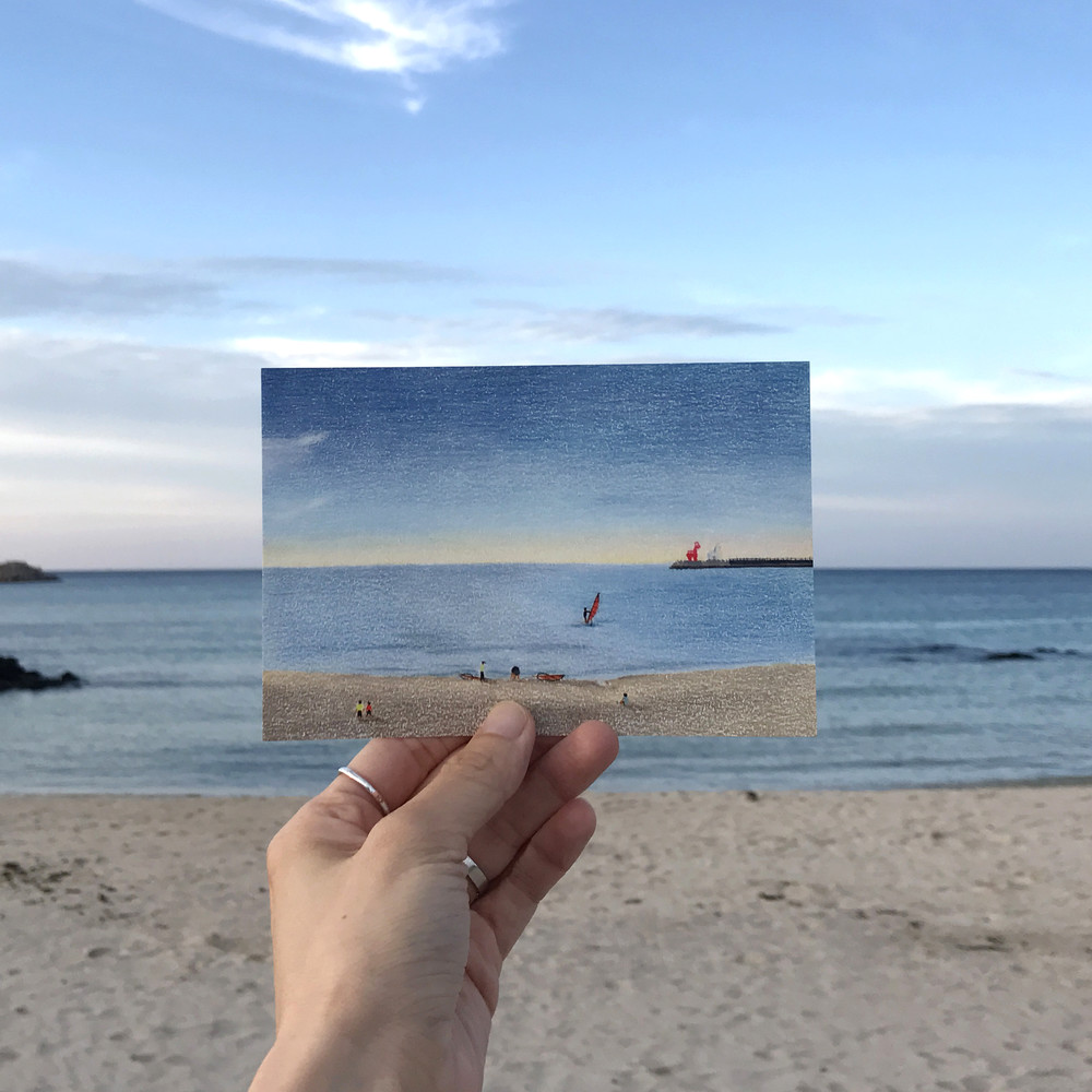 물끄러미 한참을 바라보았던 제주 바다를 담은 그림,