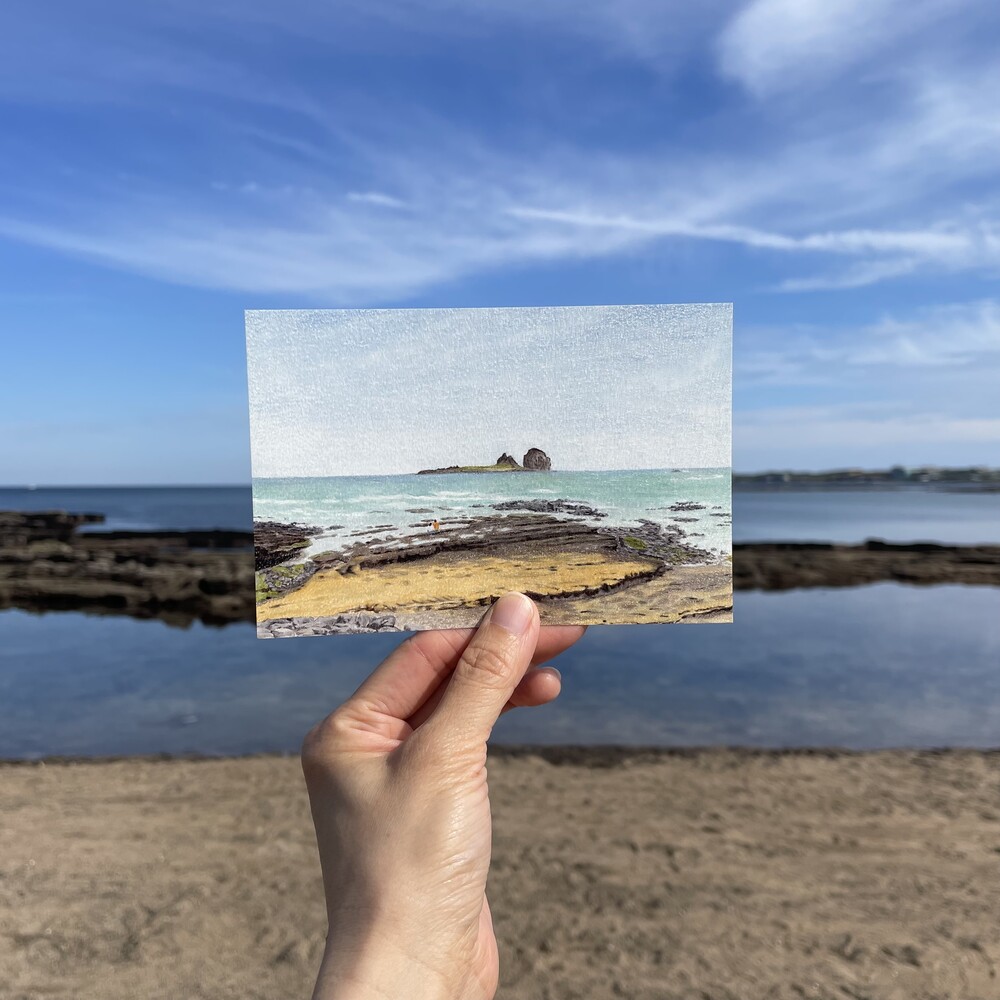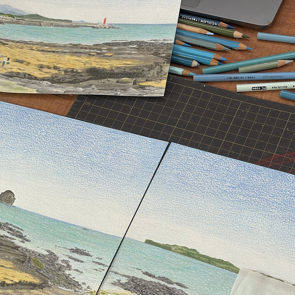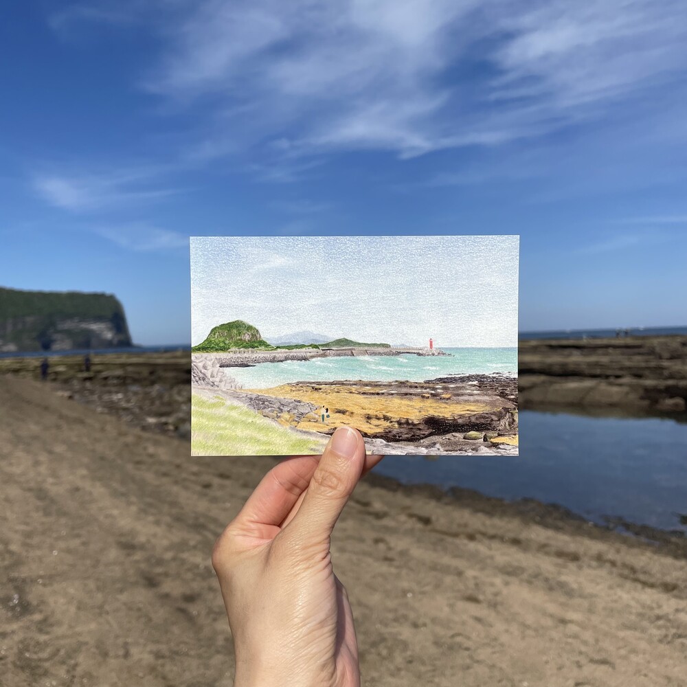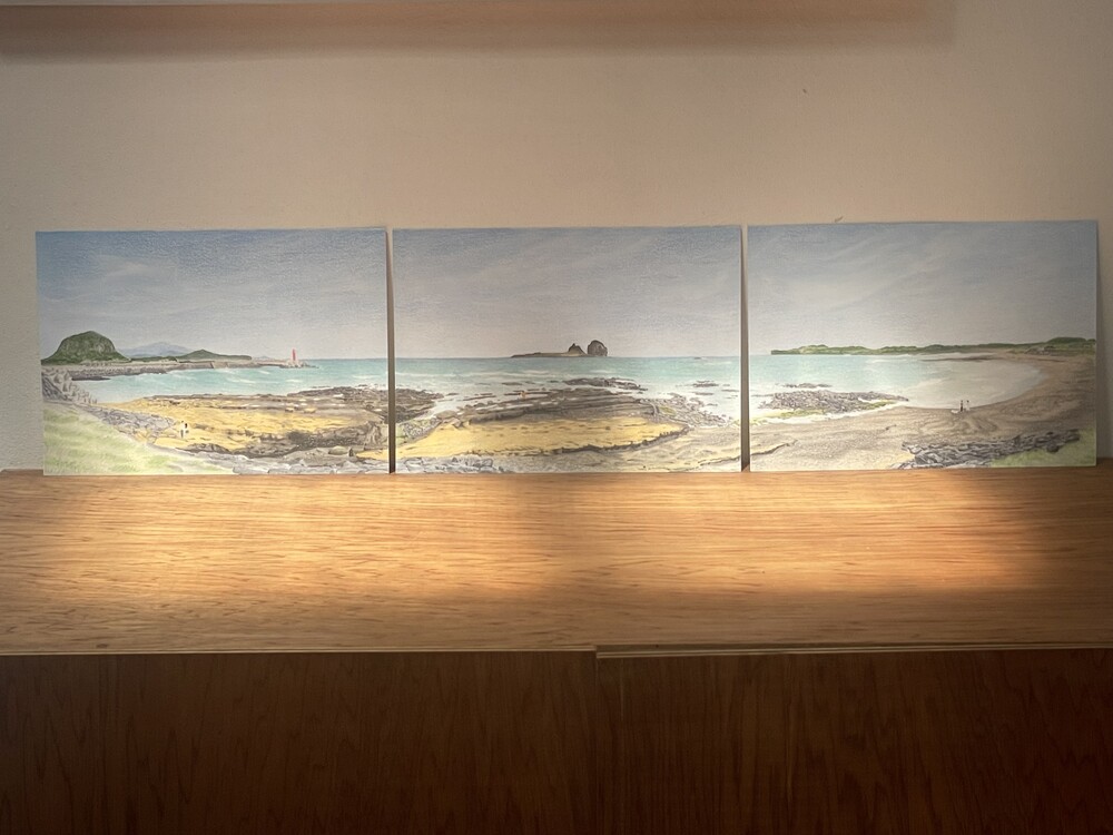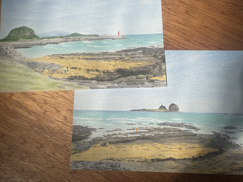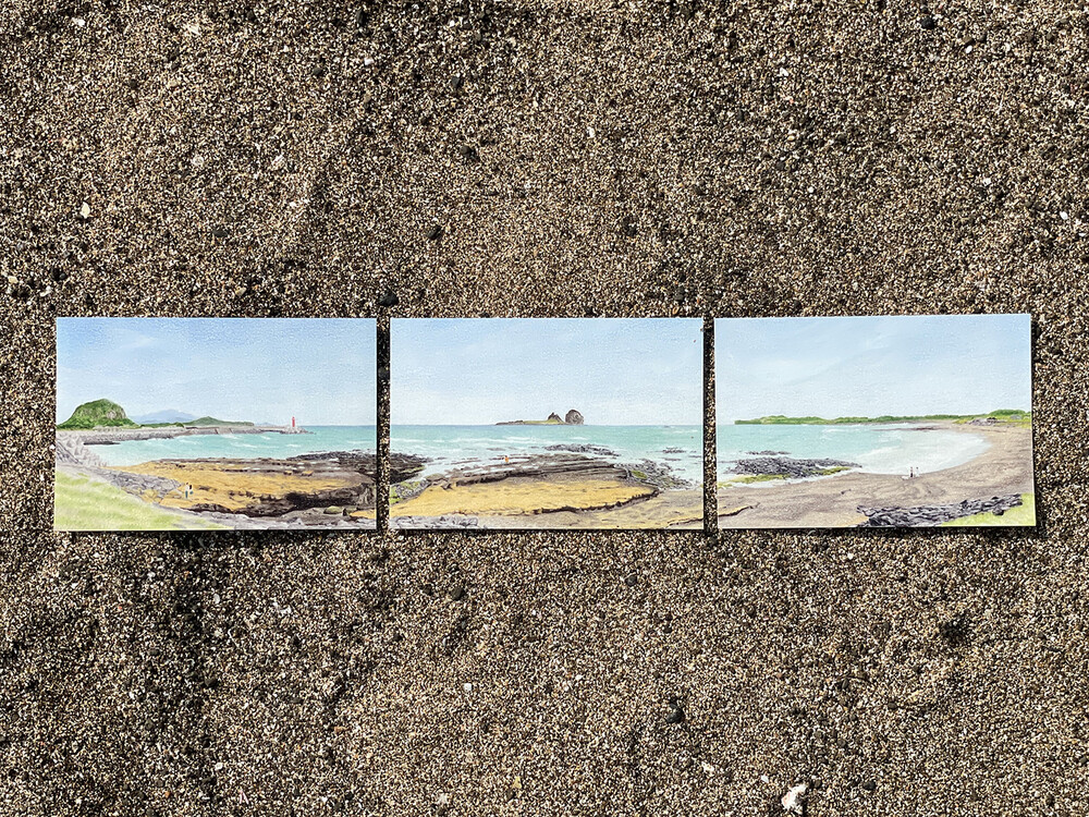 물끄러미 한참을 바라보았던 제주 바다를 담은 그림,