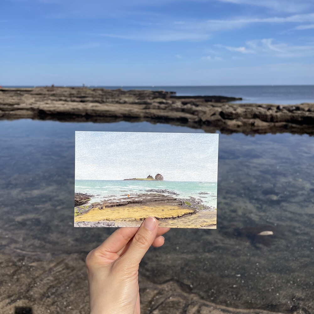 세 장이 하나로 이어지는 엽서 세트입니다.