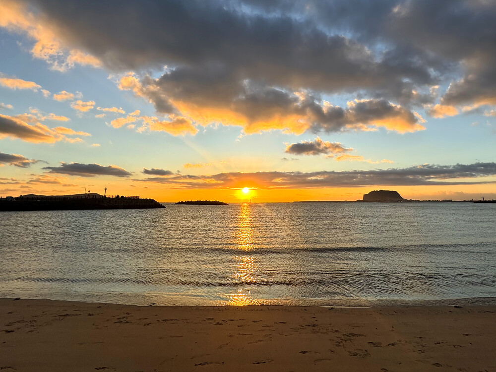 동그랗고 눈부신 새해가 떠오르는 걸 바라보는, 설레임이 가득한 제주 동쪽 바다에서의 일출.