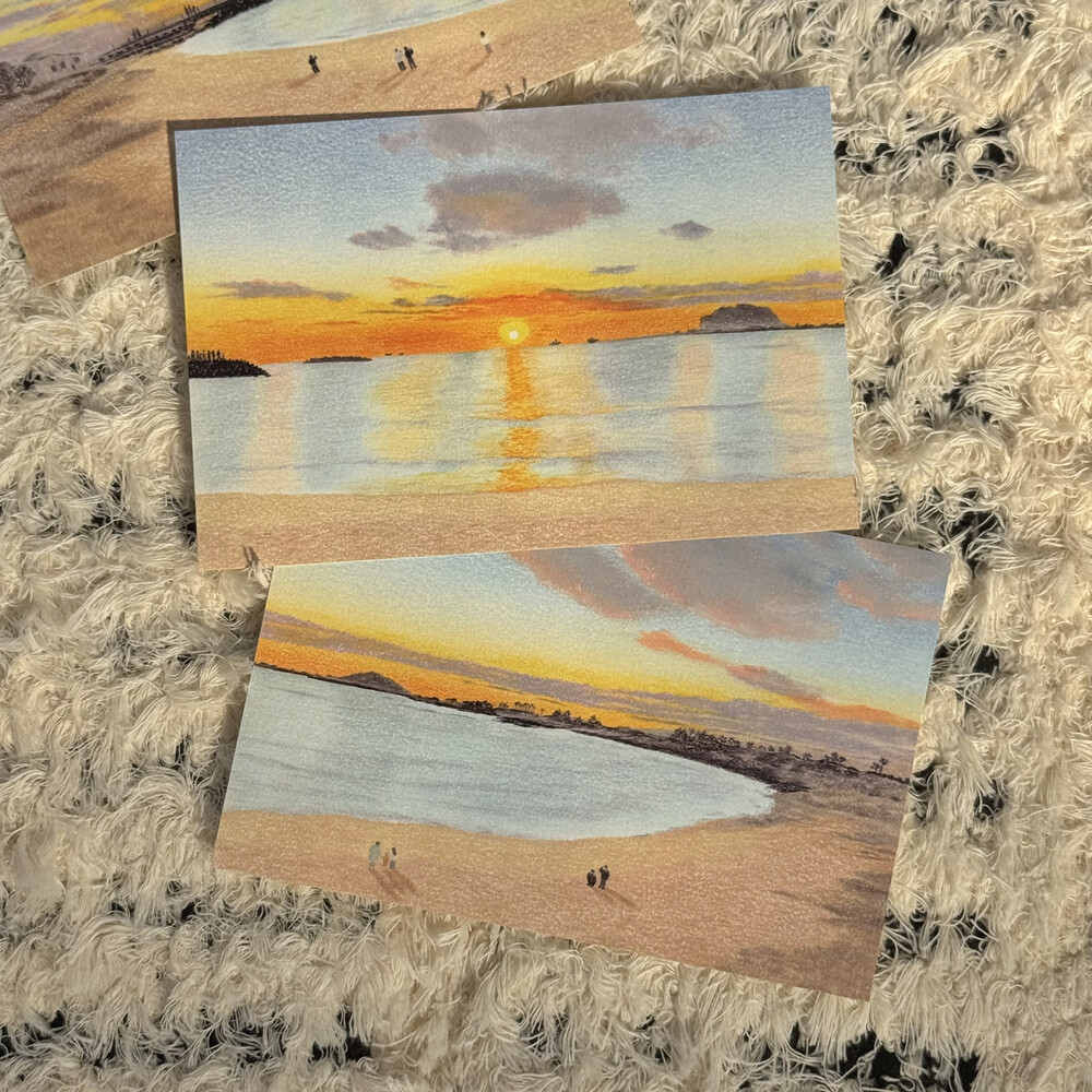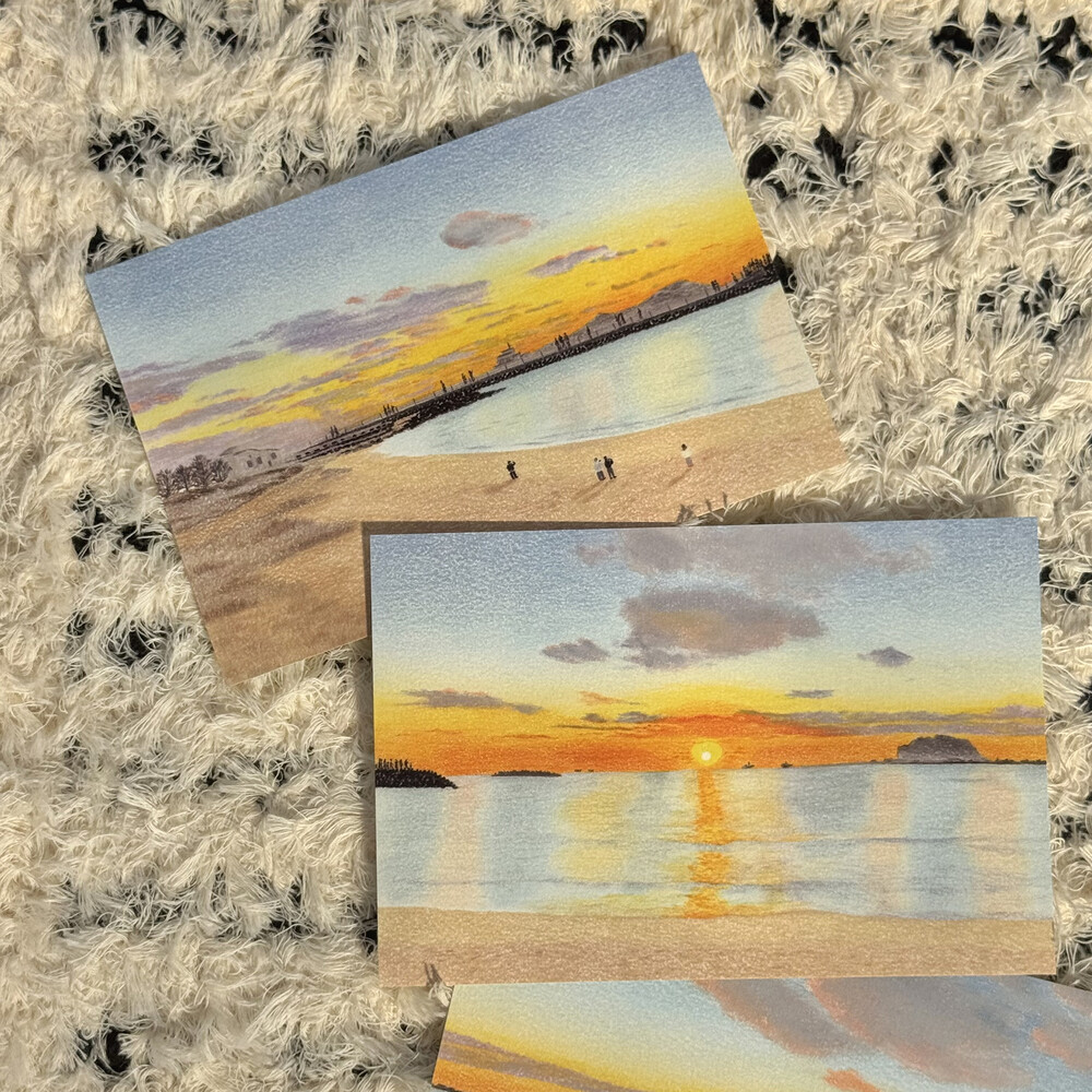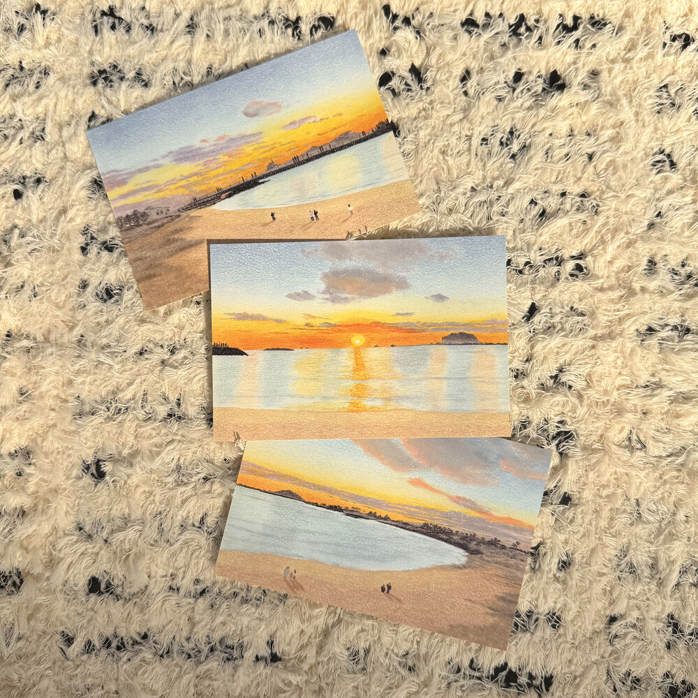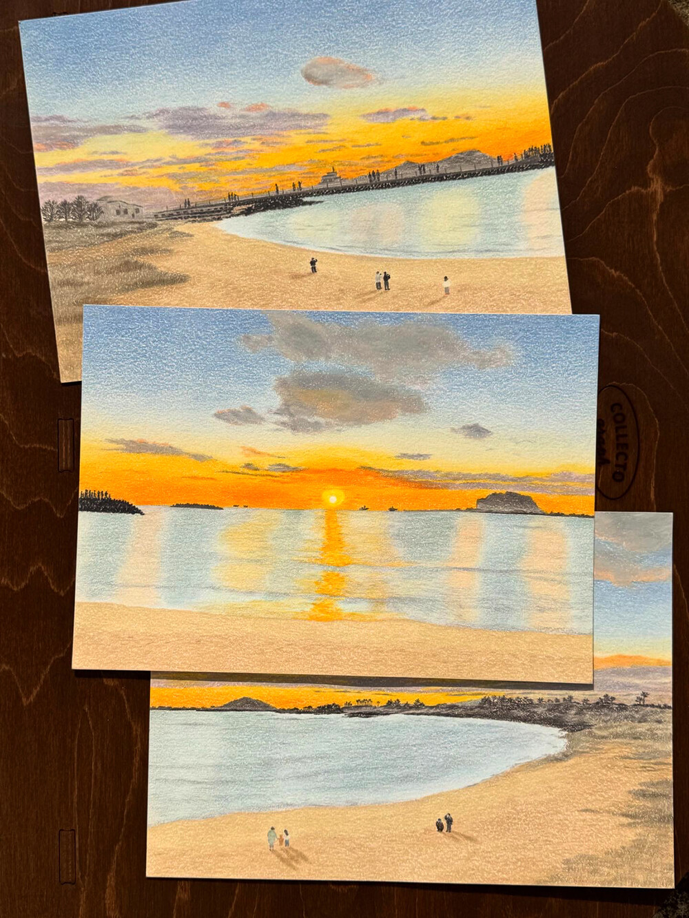 제주 숲과 오름을 담은 그림, 세 장이 하나로 이어지는 엽서 세트입니다.