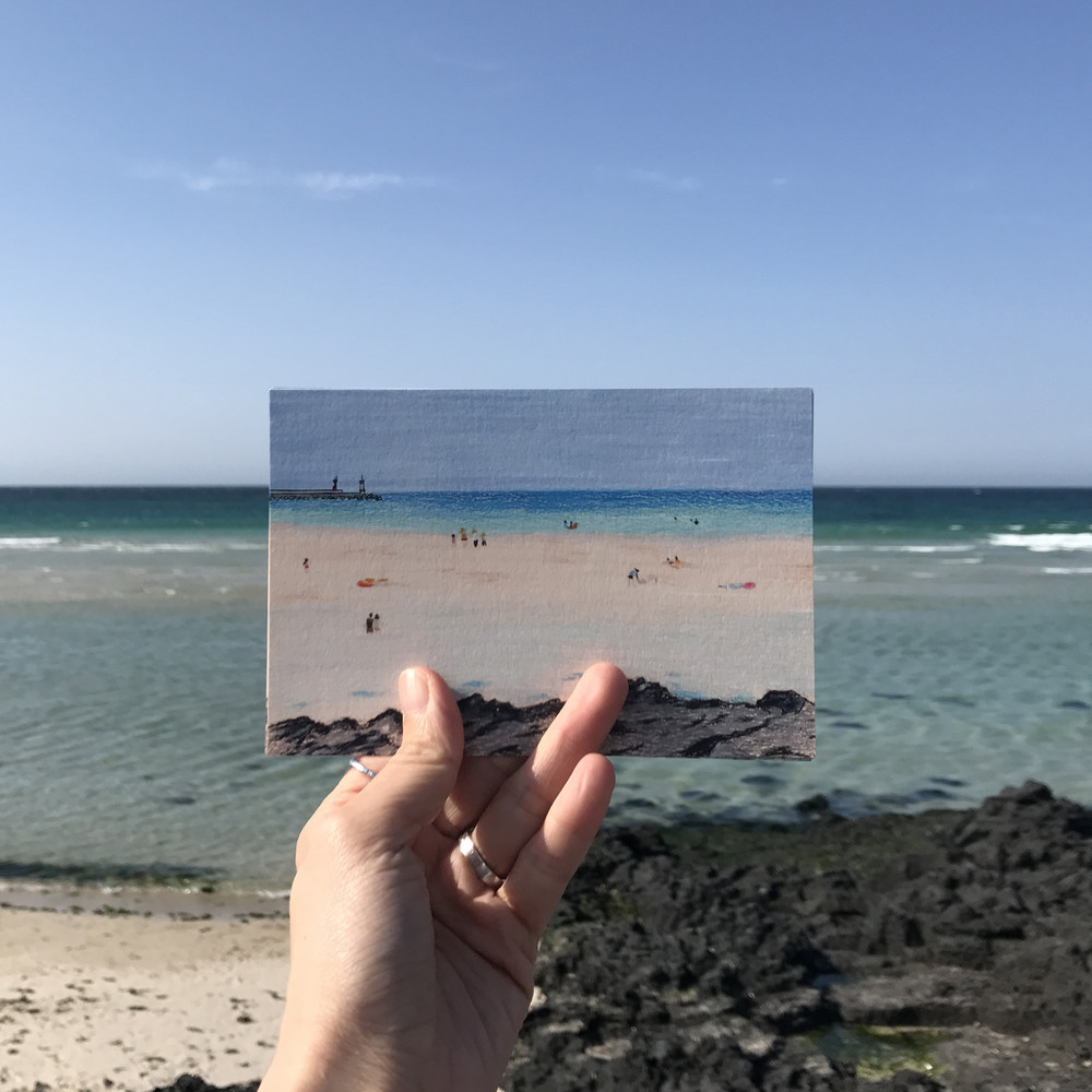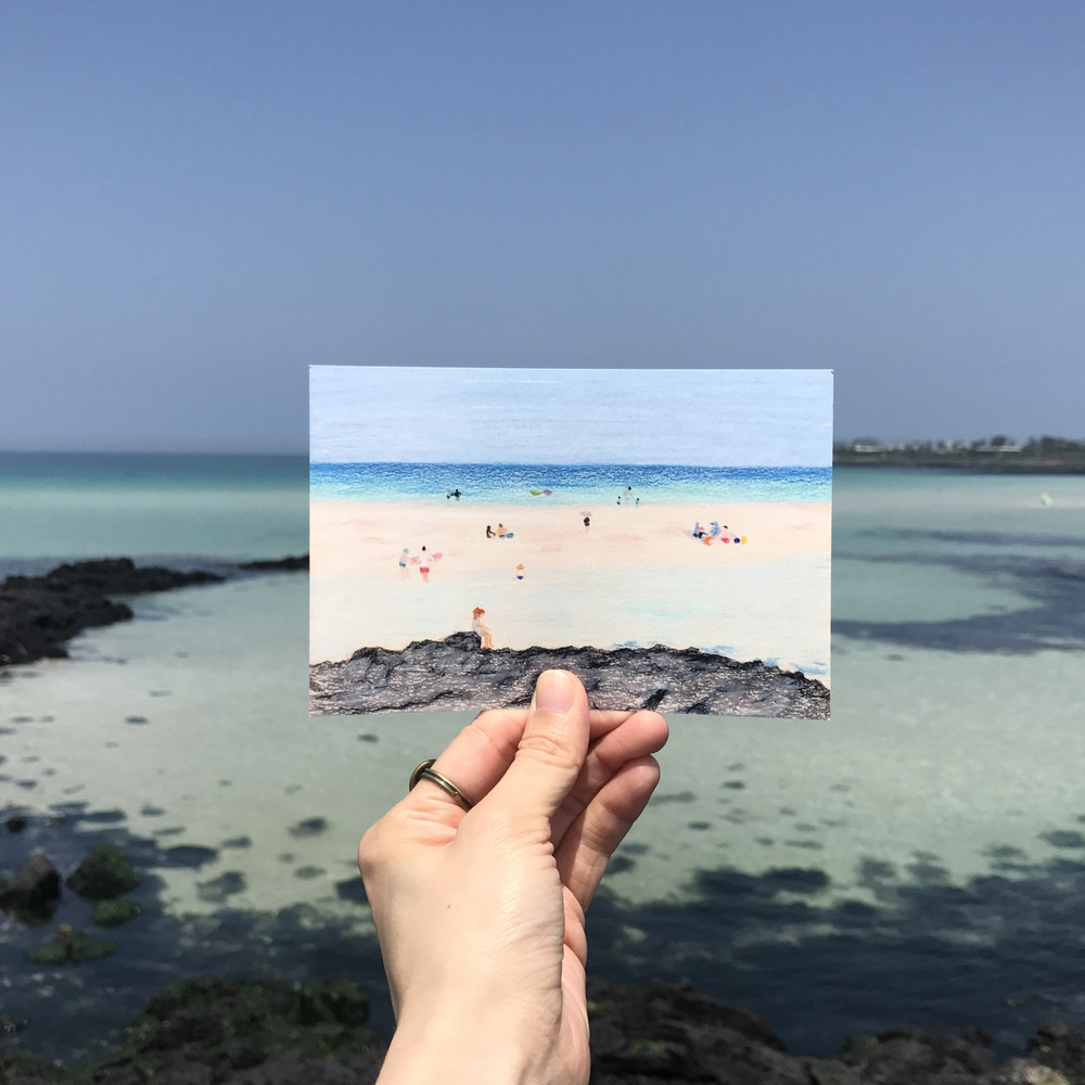 물끄러미 한참을 바라보았던 제주 바다를 담은 그림,