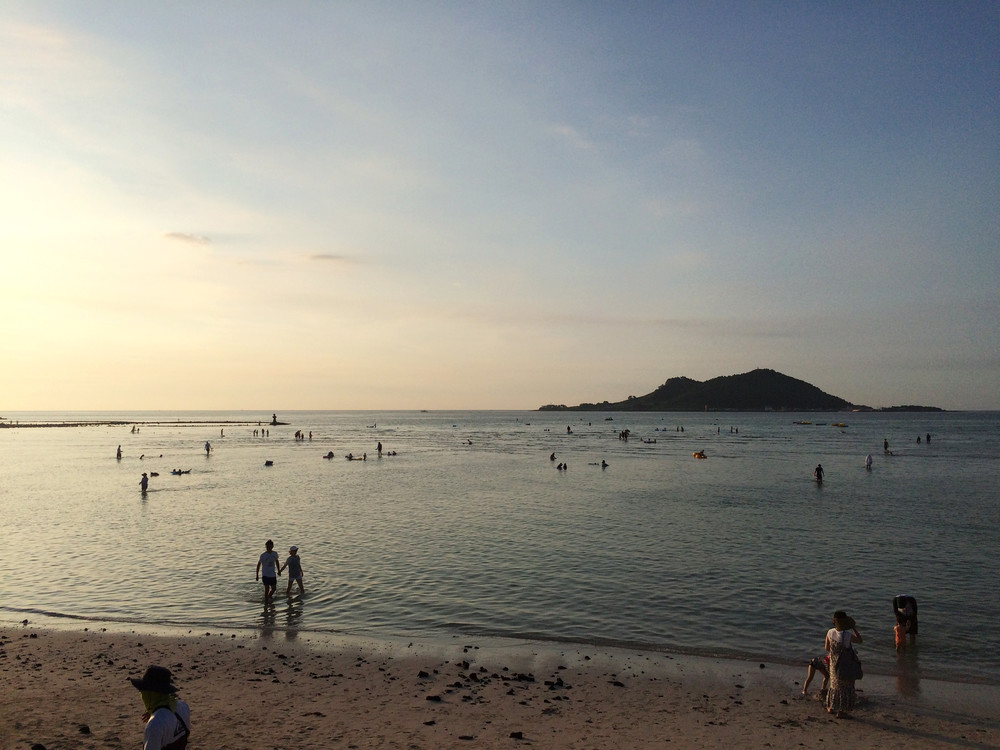 실루엣으로 보이는 바닷가에 사람들이 너무도 아름다웠다.