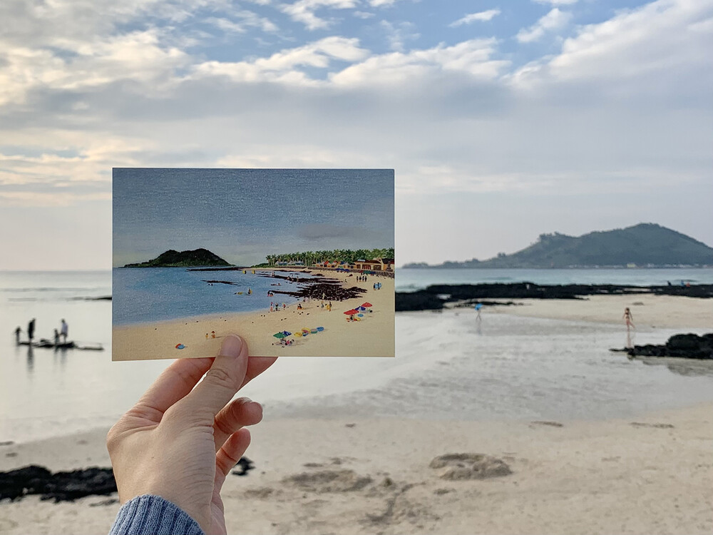 물끄러미 한참을 바라보았던 제주 바다를 담은 그림,