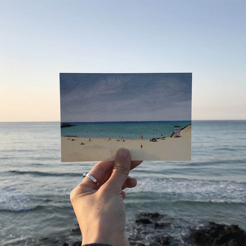 물끄러미 한참을 바라보았던 제주 바다를 담은 그림,