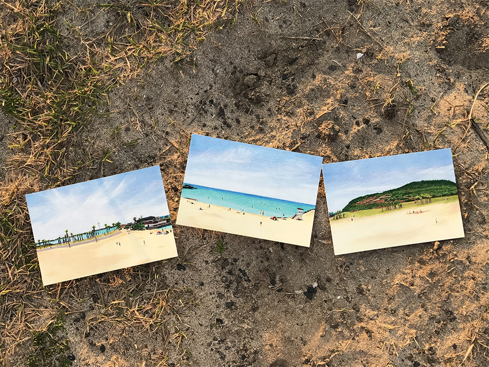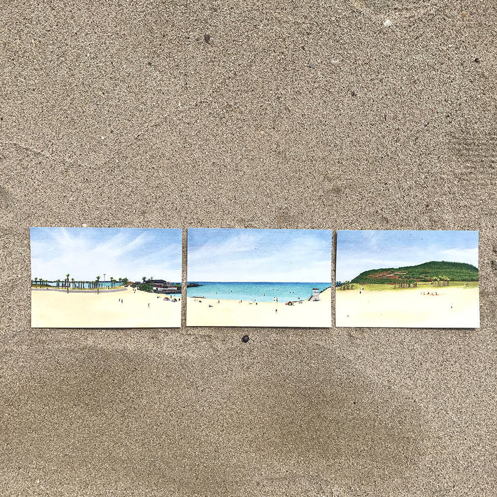 세 장이 하나로 이어지는 엽서 세트입니다.