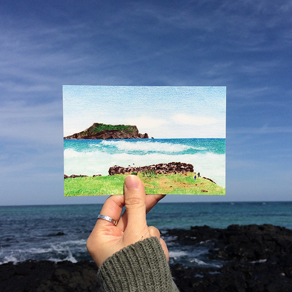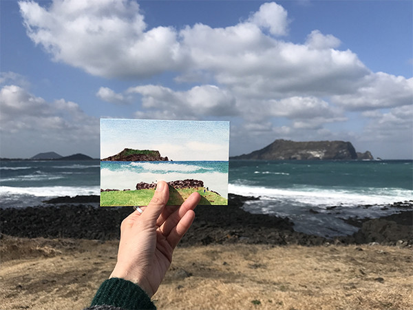 물끄러미 한참을 바라보았던 제주 바다를 담은 그림,