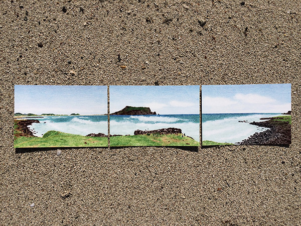 세 장이 하나로 이어지는 엽서 세트입니다.