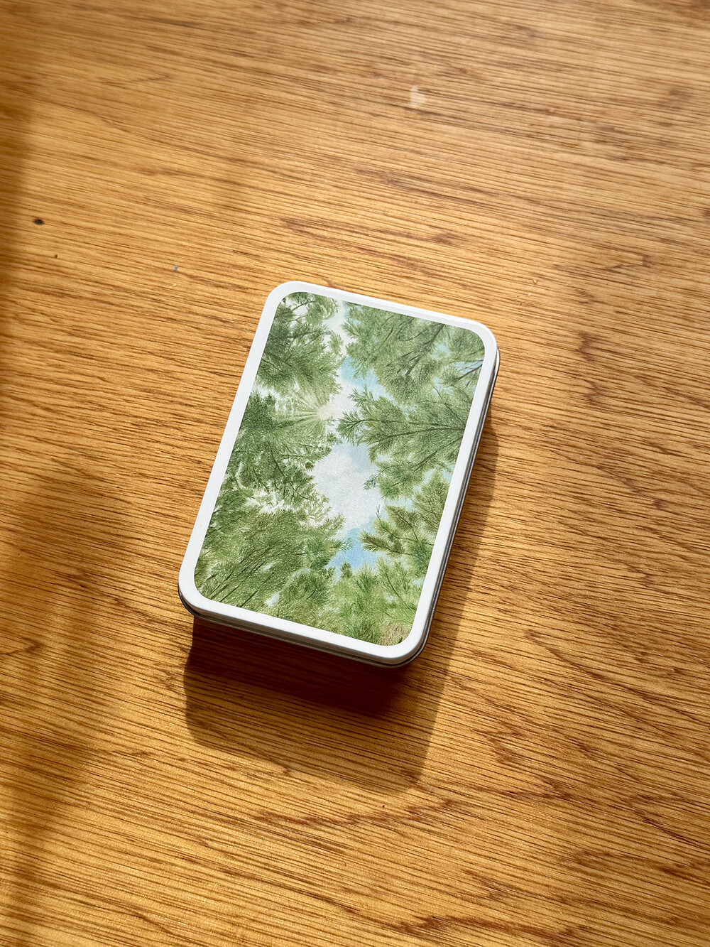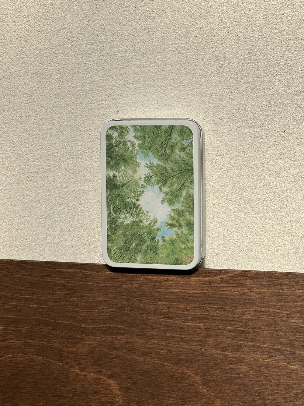 숲 속에서 나무 사이로 올려다 보이는 하늘을 담았습니다. 🌿